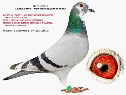獲得冠軍者為比利時約翰.范達姆(Johan van Damme) 鴿舍,該舍的神奇鴿”洛可號B05-4333360灰公”(Locco)2005年出生(高達5歲鴿齡)老當益壯,獲得全國布瑞福16.813羽總冠軍,而且該鴿神勇無比,年年參賽,在中距離及當日賽長距離賽事翔績上已有一大串,可說每戰皆捷,而且該鴿已有出色的育種成績,再加上血統為帝盧-速霸龍"夢幻配對"的近親名血加持,如虎添翼,鴿主當初喊話,價格若未達愛力克.林柏格全國鴿王鷹眼(Ealge Eye)十餘萬歐元的水平,免談!