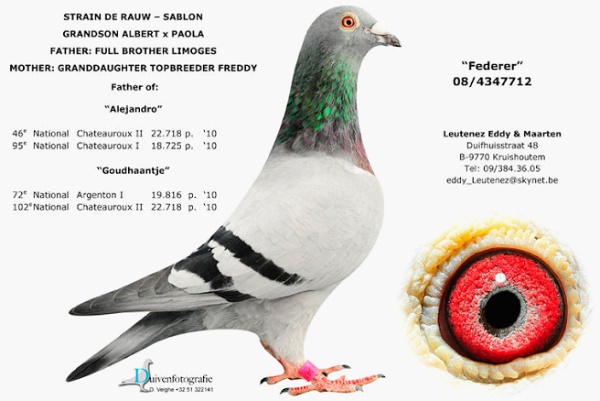 父鴿:B08-4347712灰.“費德勒”,超級種公,帝盧-速霸龍“夢幻配對”的直孫!