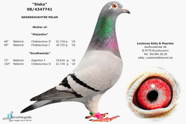 其父鴿:B08-4347712灰,為帝盧-速霸龍“夢幻配對”B90-4002911亞伯XB90-4002926寶拉”的直孫!