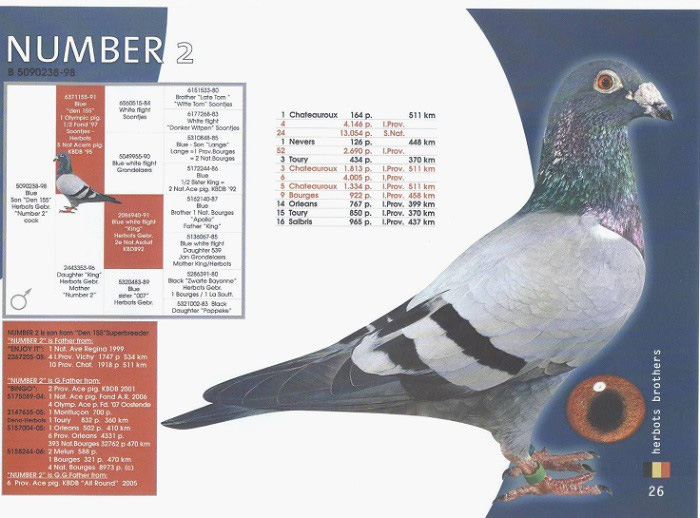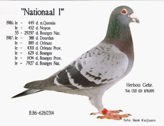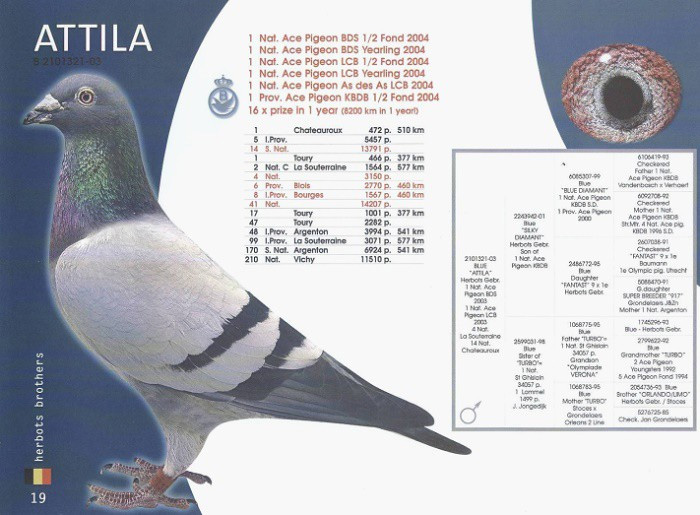 “阿蒂拉” B03-2101321 灰公”,2004年比利時全國中距離鴿王冠軍。
