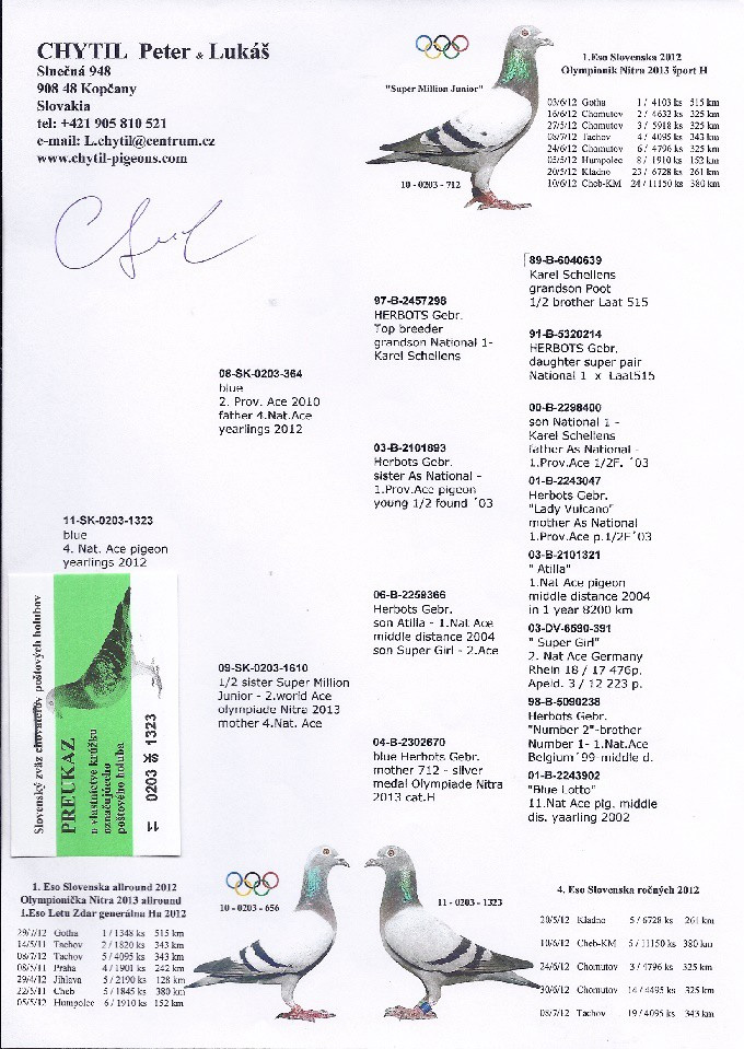 2012年斯洛伐克全國一歲鴿鴿王4位