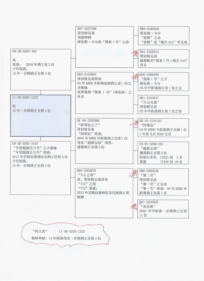 “全國一歲鴿王4位” 11-SK-0203-1323 灰公 中文翻譯血統書