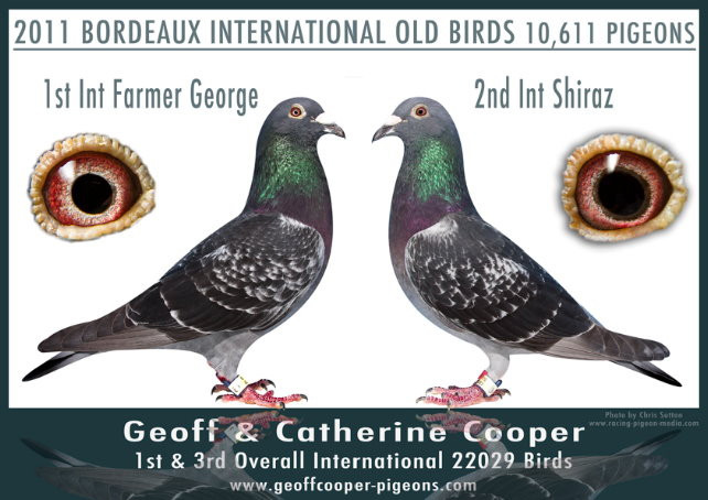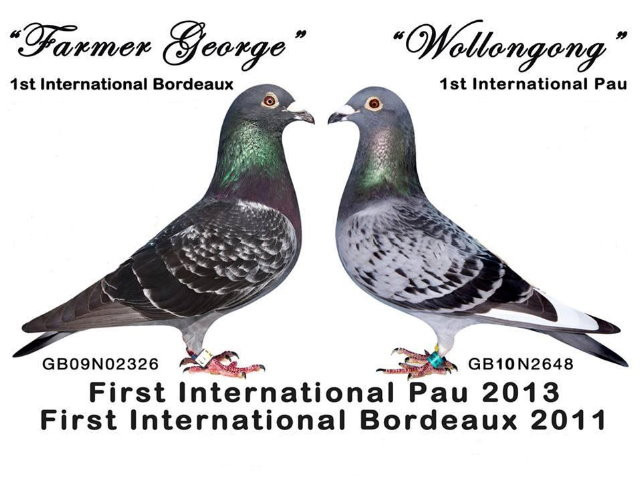 一、GB09-N02326 "喬治農夫"黑斑,榮獲:2011年波爾多國際22.066羽總冠軍。