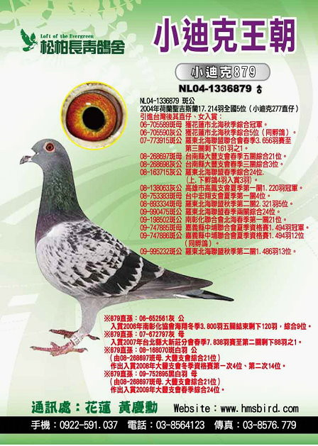 我另有一羽09-239678班公( 879 X 301綜合15位)售嘉義民雄鴿友,作出冬季同孵鴿獲得冠、亞軍(最後很遺憾給別人伯馬),考布曼這系鴿,是多年難得一見的好鴿,值得永久珍藏。