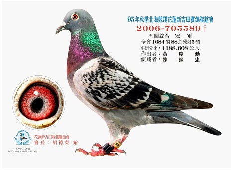 我賣給客戶. 06-705589班母(小迪克 879 X 181綜合亞軍) 獲花蓮市北海秋季五關綜合冠軍。