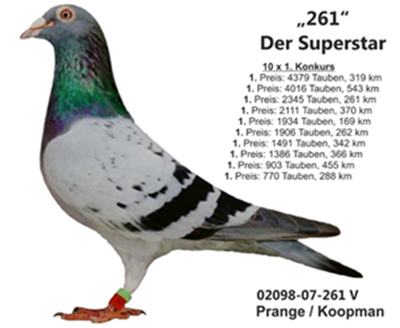 “261”成為德國鴿友追求的目標,他的直子(女)只賣給少數的幾個朋友,外人很難得到這只神奇雄鴿的子代。