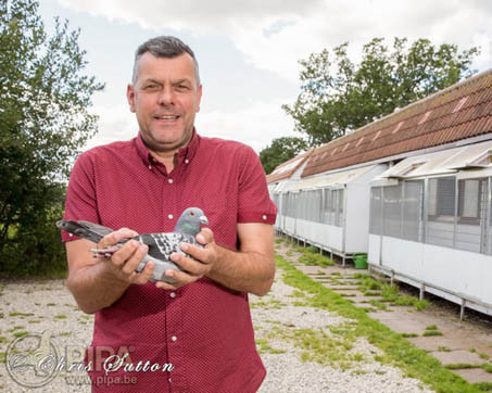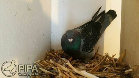 2018年6月9日比利時中距離強豪范希.雅克&福雷迪(Vandenheede Jacques & Freddy)兄弟鴿舍入賞瓦朗斯全國賽7,687羽670公里39位。就是“巴賽隆納新榮耀號直孫女”(Granddaughter New Laureaat Barcelona)NL15-1689113 灰白羽.母。