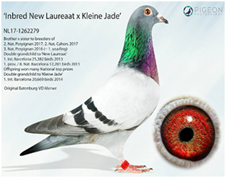2018年阿讓荷蘭全國一歲鴿 12位、27位(耶勒.耶勒瑪)"新榮耀號"的孫代。