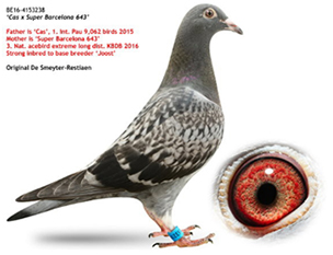 2019年7月6日巴塞隆納國際賽16.051羽13位(荷蘭全國5位)是”新榮耀號”直孫女!NL16-1508442灰白羽.母 黃眼。