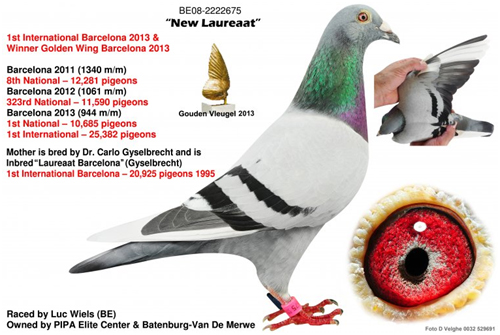 2013年巴賽隆納國際25.382羽總冠軍(分速944米/分)未達1.000公尺是場艱難的競翔比賽。