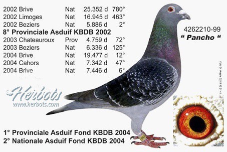 克利斯.賀伯瑞茲名鴿,2004年比利時K.B.D.B.全國長距離鴿王亞軍。 |