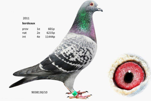 2011年的波爾多(Bordeaux)國際賽,於6月28日交鴿總數22.066羽(含成鴿組10.622羽、一歲鴿組11.444羽)於7月2日上午6時45分放鴿。