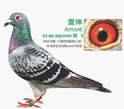 -“伊美”的直女“愛神號NL00-5063949”是超級雌鴿,本身榮獲:2002年全國當日歸長距離鴿王冠軍,2003年奧林匹克代表鴿。