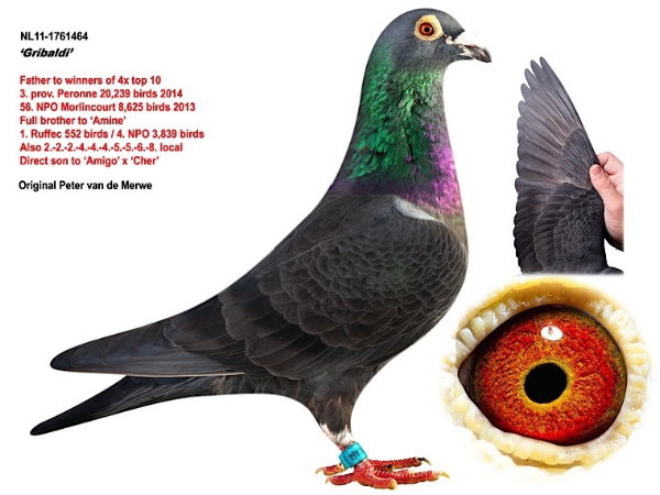 ●父鴿NL05-1400951"阿米果",超級賽將&種公,出自基礎鴿"重播號",本身榮獲:
