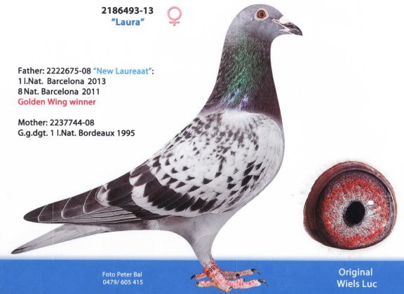 B13-2186493班母(盧克.威爾斯本舍近親作出鴿),世界名鴿"新榮耀號" 直女。