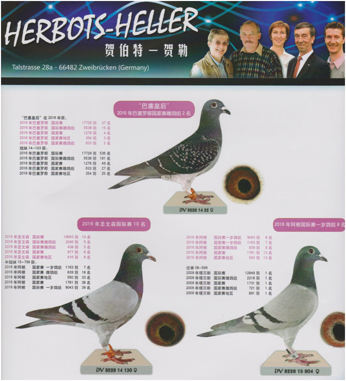 2016年巴賽隆納國際賽17.729羽27位(966.625公里)國際母組5.538羽15位,德國全國1.278羽4位(全國母組亞軍)德國海勒.賀伯特鴿舍作出。