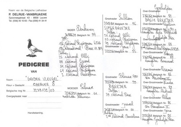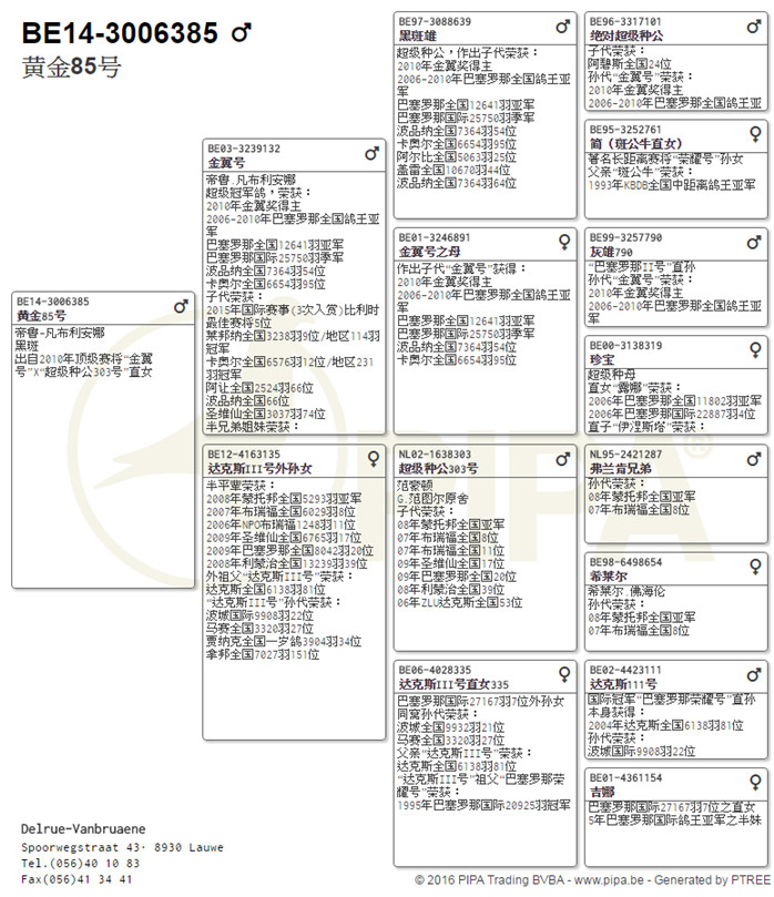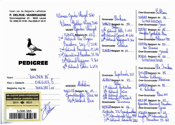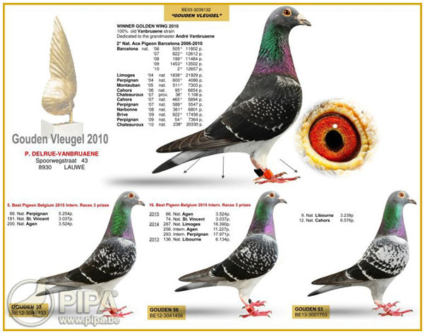 帝魯-凡布利安娜(Delrue-Vanbruane)是凡布利安娜系始祖安德列.凡布利安娜先生的外孫,想當然爾,必定他養外祖父的凡布利安娜系四年前他的一隻雌鴿露娜(LUNA)才贏得巴塞羅那全國亞軍,去年賣給PIPA的卡羅醫師,後又轉售往日本去了。