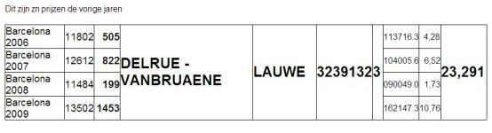 2006-2010年巴賽隆納全國鴿王亞軍。