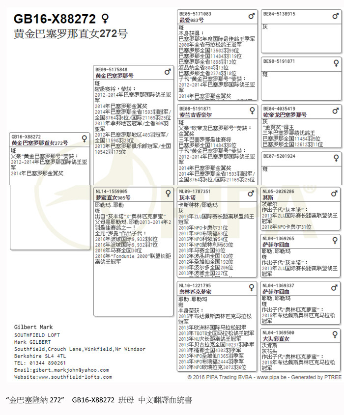 "金巴塞隆納272" GB16-X88272 班母 血統書