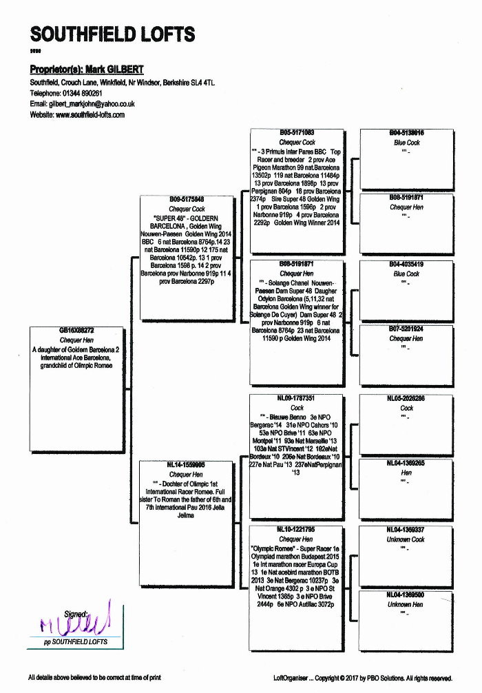●父鴿:BE09-5175848 "黃金巴賽隆納號",比利時強豪諾爾.珮崙超級種鴿,