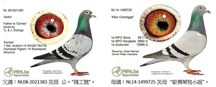 ●父鴿:NL08-2021383班公,“精工號”,彼得.文斯特拉原舍,出自“勞力士”X“灰先生直孫女”