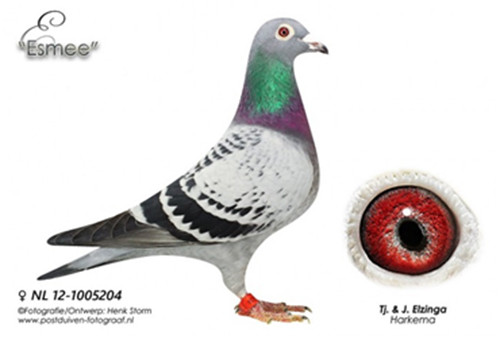 “歐佛萊格小姐”的另外一羽配對鴿為“精工號”。查看“精工”的完整血統書。他的父親“勞力士”(NL07-1180406班公 Rolex)獲得2009年WHZB全國鴿王冠軍和“灰先生”的直孫。“精工號”因為作育子代“艾絲米”(NL12-1005204 Esmee)而聞名世界,“艾絲米”由荷蘭艾辛加鴿舍(Tjeerd & Jouke Elzinga)使翔,下面是他的成績,從中我們可以看到他確實是一羽頂級戰將: