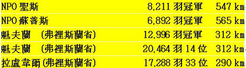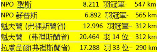 伊斯尼1,958羽亞軍 … 海沙特1,386羽亞軍 … 維爾沃德1,125羽亞軍。