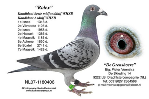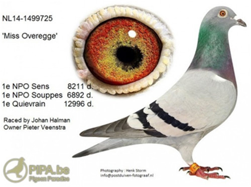 彼得.文斯特拉再次成為2015年荷蘭鴿壇最受人關注的鴿友,大家都在談論他最新引進的“歐佛萊格小姐”NL14-1499725灰母(Miss Overegge),更有趣的是“歐佛萊格小姐”的父、母鴿早已默默的移居到另一超級強豪考夫曼的種鴿舍裡,不得不佩服這些強豪的眼光之精準。