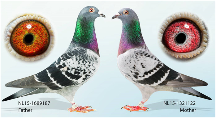 父鴿:NL15-1689187班公”新碧玉4號” X 母鴿:NL15-1321122班母”新碧玉6號”