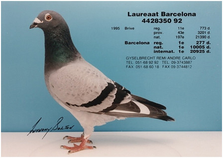 “巴賽隆納榮耀號”B92-4428350灰白羽公“1995年巴賽隆納國際20,925羽冠軍。