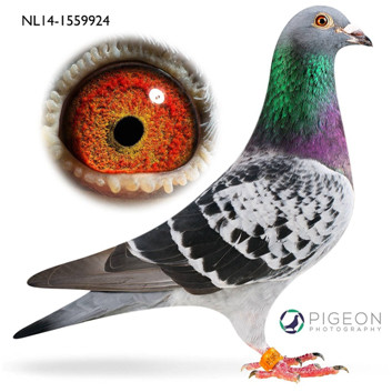 2.本鴿的父親與母親的全兄弟姐妹鴿NL14-1559924班公”新碧玉2號”作出子代獲得: