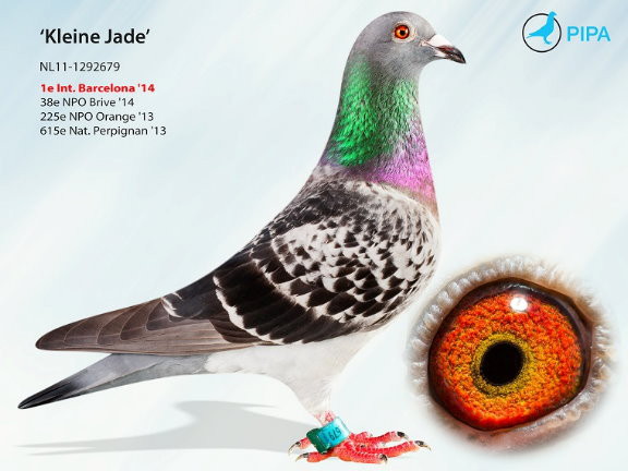 ~ "小碧玉"在2014年巴賽隆納賽上,僅以20個小時多就完成了1.258公里的比賽,是史上巴賽隆納國際賽空中距離最長記錄。比賽於早上9點鐘放飛,她在翌日淩晨5:14歸巢打鐘。