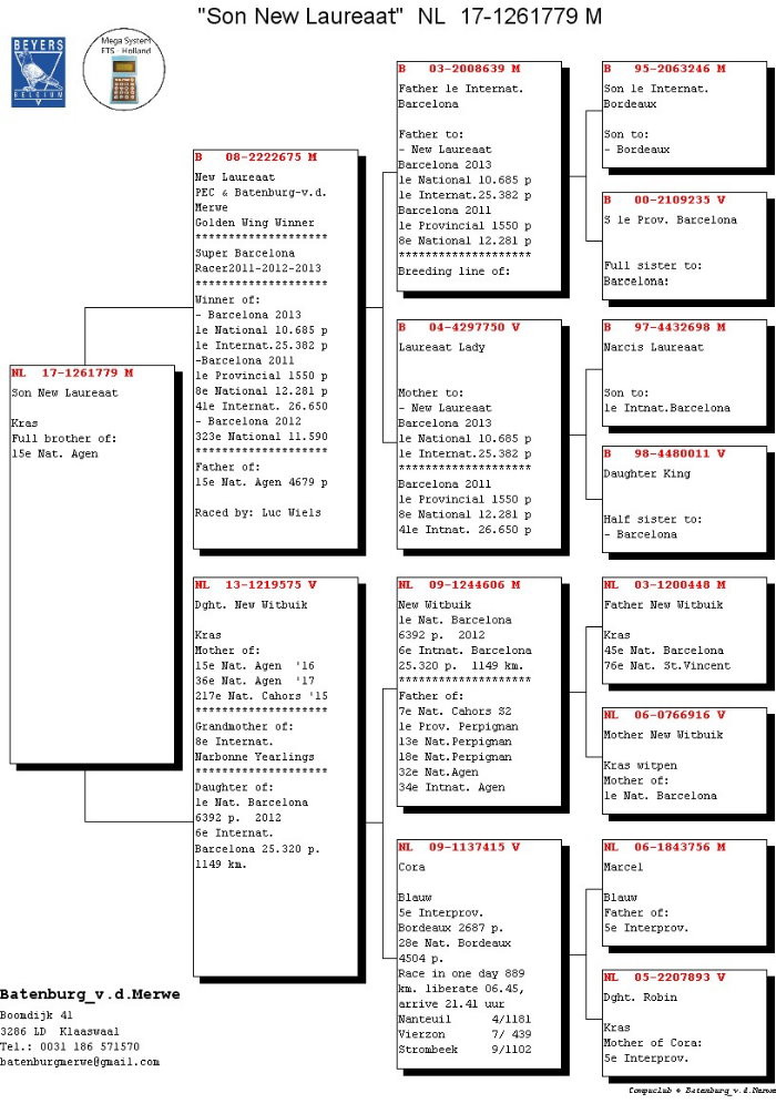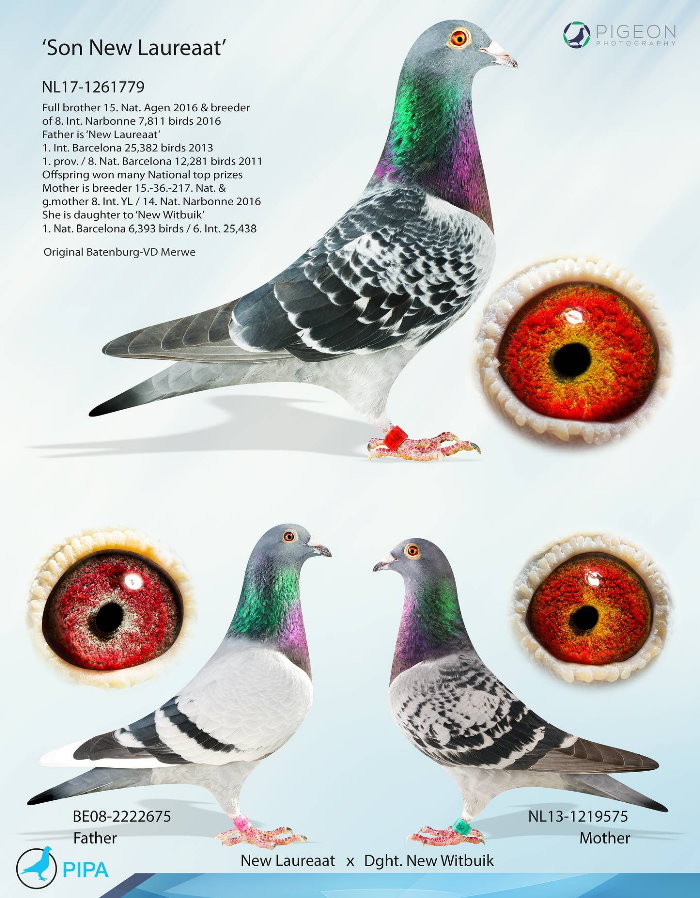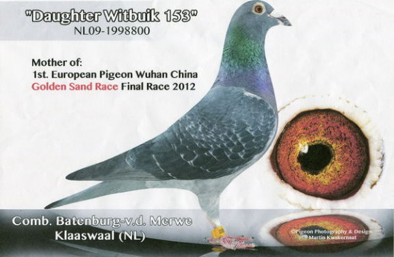 "新白腹號"(NL09-1244606 New Witbuik), 2012年巴賽隆納全國冠軍. 他的直女與"新榮耀號"成功配對