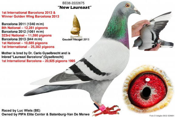 2013年巴賽隆納國際25.382羽總冠軍(分速944米/分)未達1.000公尺是場艱難的競翔比賽。
