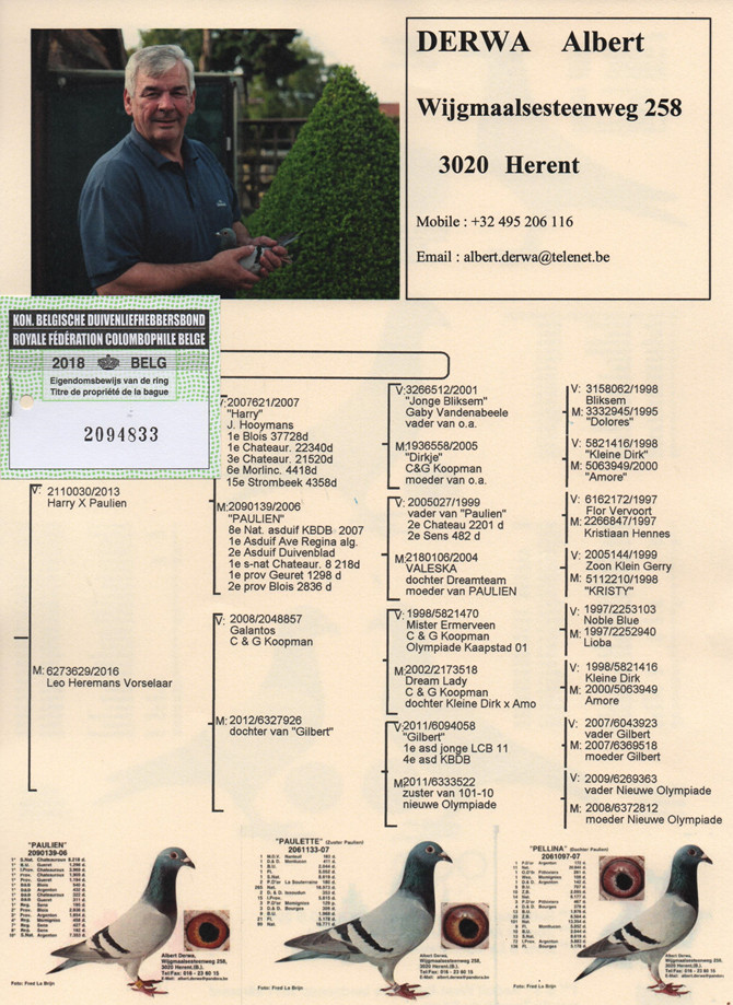 9.“保羅先生”在卓越育種中心作出子孫代獲得:12個冠軍獎項&全國中距離鴿王冠軍(“法國女王”)。