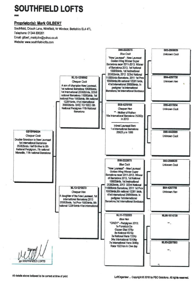 2018年波提爾全國1,800羽冠軍(馬克.吉伯特) – “新榮耀號”之孫代。