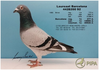 獲得:1995年巴賽隆納國際20,925羽冠軍。