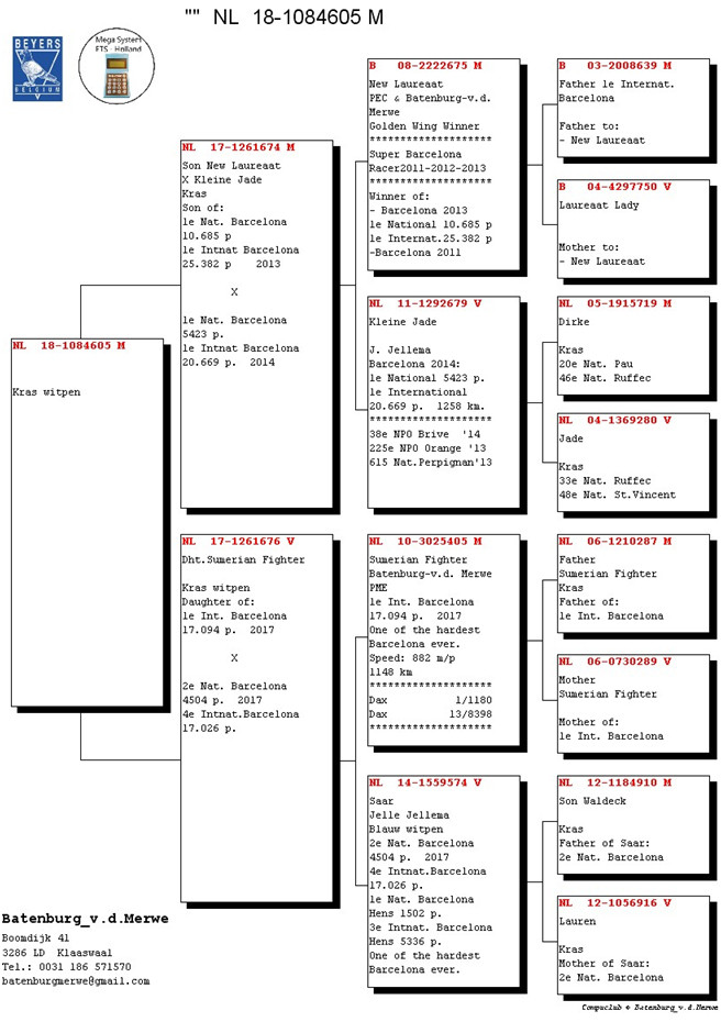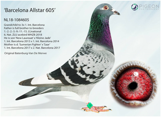 —其父親 NL10-3025405班公,“蘇美爾戰將”,2017年巴賽隆納國際17.094羽冠軍得主。