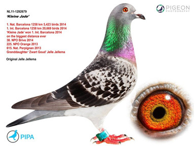 頂尖雌“莎兒”NL14-1559574灰白羽.母,為耶勒瑪獲得了巴賽隆納荷蘭全國亞軍(國際17.094羽4位)。她上籠時,其幼鴿是8天大。她是一羽健壯的雌鴿,肌肉有力。耶勒看著她從南方歸巢而來,速度極快。她迫不及待地凱旋歸來,掠起一陣風。“莎兒”未來應該不會再參加比賽了,耶勒瑪想以之培育能夠駕馭長時間嚴苛比賽的鴿系。耶勒瑪說,她賽後會馬上轉移至育種舍。