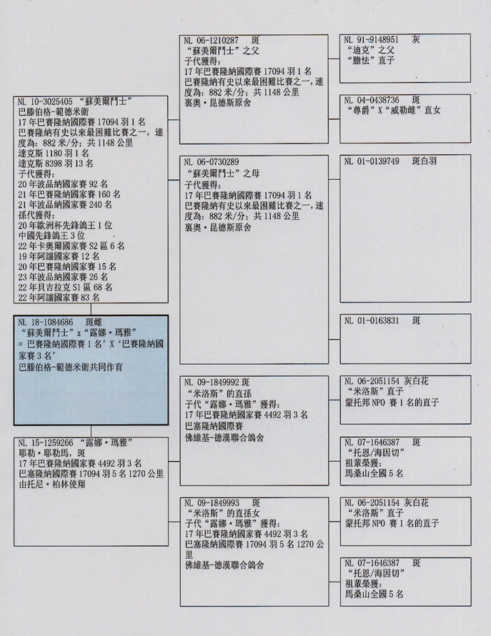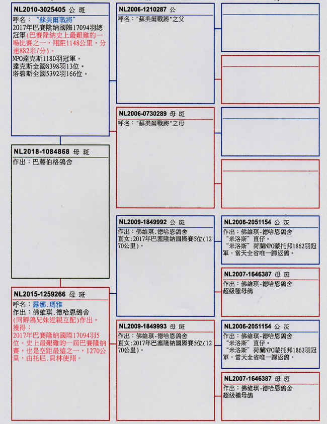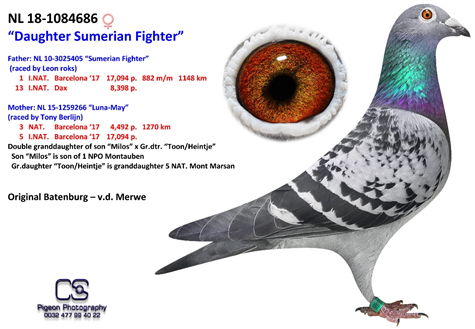 ●父鴿:NL10-3025405 “蘇美爾戰將” ,2017年巴塞隆納國際17.026羽冠軍,