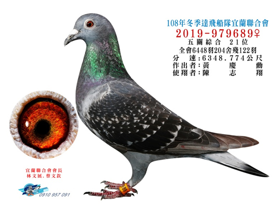 直女19-979689斑母入賞宜蘭聯合會冬季賽(全會6.448羽剩下122羽)綜合21位。