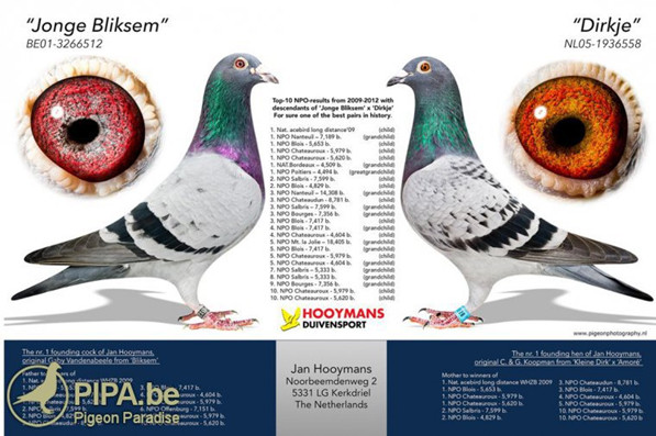 9.“保羅先生”在卓越育種中心作出子孫代獲得:12個冠軍獎項&全國中距離鴿王冠軍(“法國女王”)。