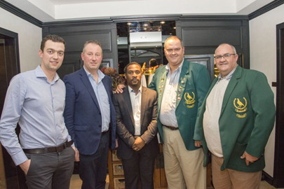 Mark Kitchenbrand, Nikolaas Gyselbrecht and Samuel Mbiza raise a toast to the record breaking sale of Golden Prince