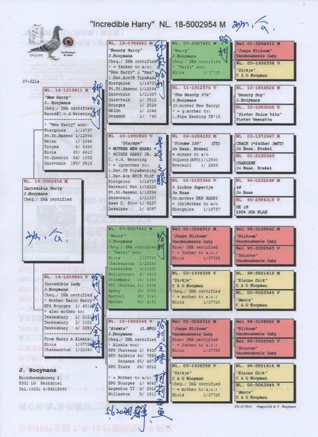 ● 外祖父鴿:NL07-2007621斑公 ,世界級名鴿 ”哈利號”。