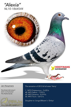 ● 外祖母鴿:NL10-1864544斑母,”阿莉西婭”是”哈利”全妹”。
