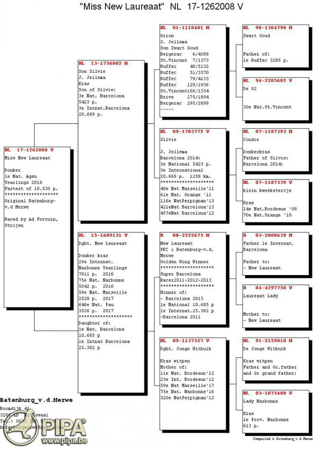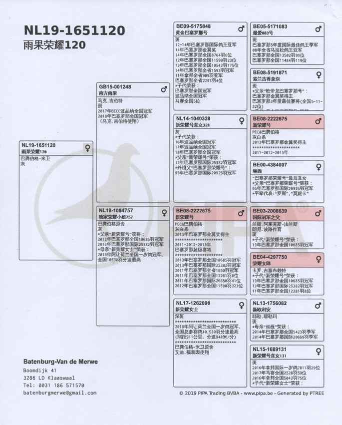 —其父親出自吉塞布賴特的傳奇大銘鴿“巴賽隆納榮耀號”B92-4428350灰白羽公的一羽直孫女,“巴賽隆納榮耀號”榮獲: