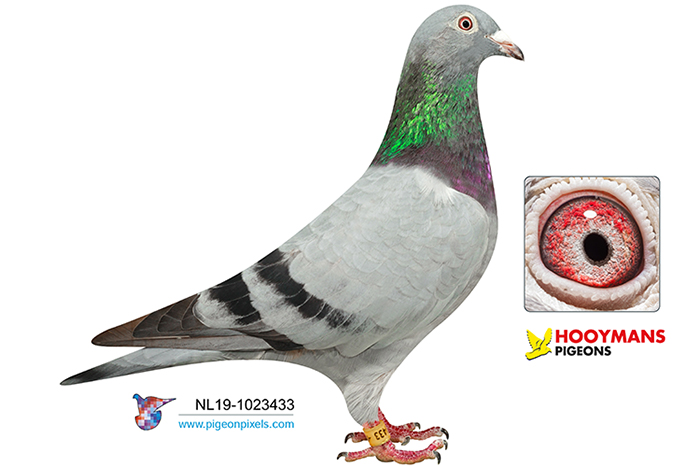 外祖父鴿:NL14-1219811灰公,楊.胡曼斯超級大名鴿 “新哈利”。