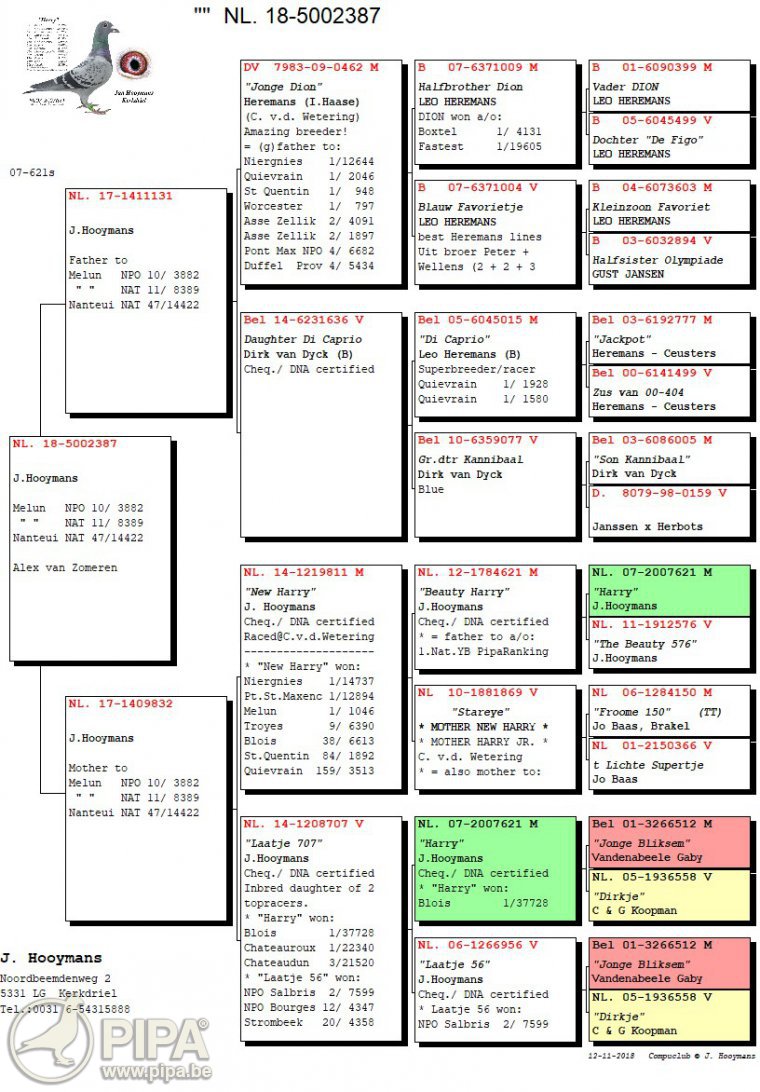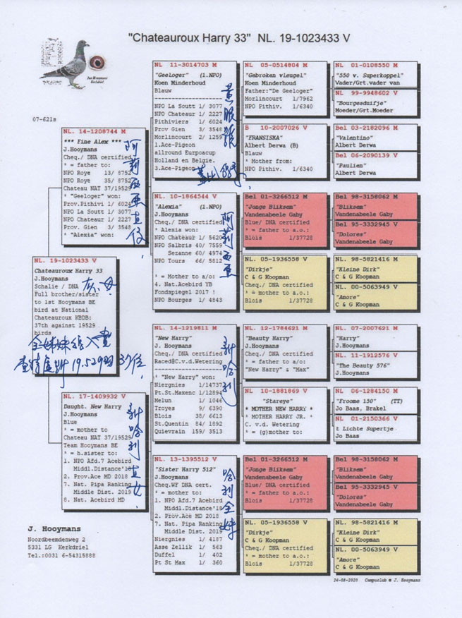 對於楊.胡曼斯來說,2018賽季永遠不會被忘記,他的世界名鴿“哈利”於8月份去世,這是一個巨大的損失。但是瞭解楊.胡曼斯的人都會知道楊.胡曼斯的種鴿戰隊已經為此做好了充足準備。換句話說,楊.胡曼斯的一些天賦新秀早已準備好繼承“哈利”的衣缽,今天我們要介紹 “哈利”的子代和孫代,他們已經準備好繼續“哈利”的傳奇。