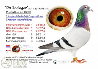 2013年獲得荷蘭全能鴿王冠軍和2013年歐洲杯國際全能鴿王季軍。