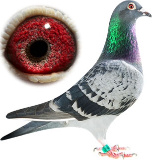 “黃眼號”的母親“法蘭西斯卡”(Fransiska)為亞伯特.德瓦原舍,也是頂級雌鴿“寶琳”的直女。“寶琳”獲得查特路半全國8.218羽冠軍、蓋雷全省1.298羽冠軍、布洛瓦全省2.836羽亞軍和亞精頓半全國7.353羽10位,因為這樣的表現她最終獲得全國中短距離鴿王8位。